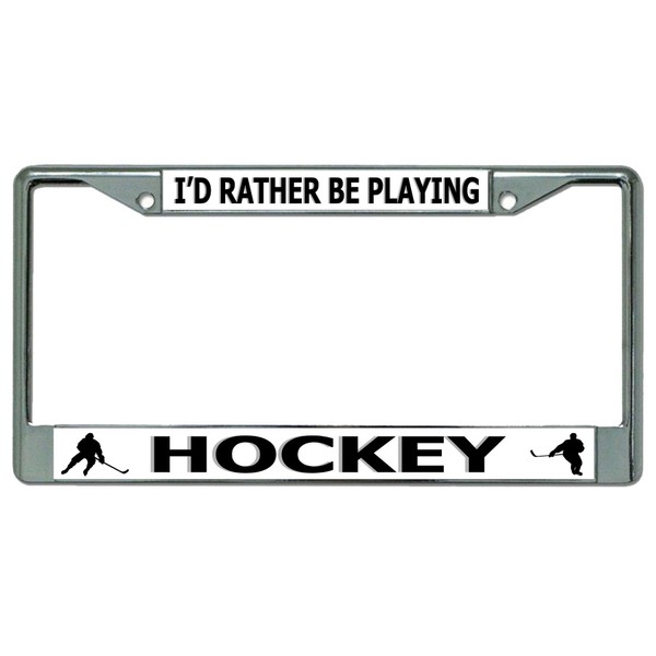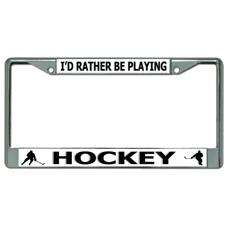 I'd Rather Be Playing Hockey Chrome License Plate Frame