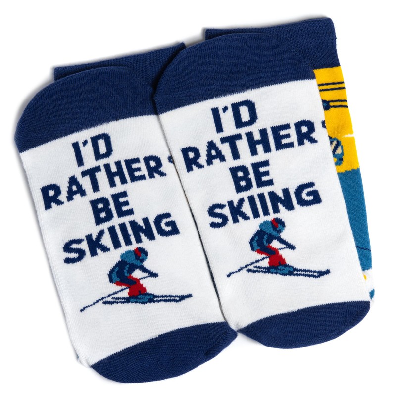 - Slide into these cool ski socks: Stylish ski themed socks that skiers love, with original art featuring an action packed ski scene - plus a hidden message that any skier will love: “I’d Rather be Skiing”!