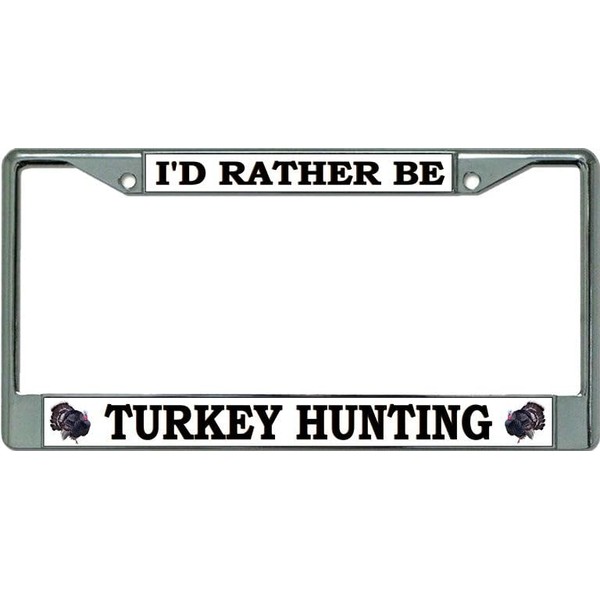 I'd Rather Be Turkey Hunting Chrome License Plate Frame