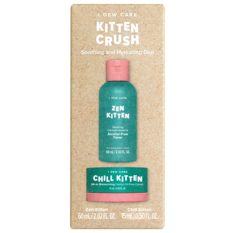 I Dew Care Travel Skincare Set - Kitten Crush | With Centella Asiatica, Prickly Pear, Aloe Vera, Heartleaf Extract, Hydrating, Facial Toner, and Moisturizer for Blemished Skin, Gift, Gift Set, Spa Day