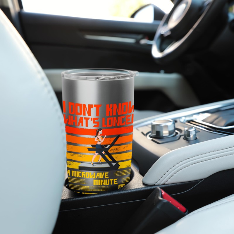I don't know what's longer a microwave minute Treadmill Stainless Steel Insulated Tumbler