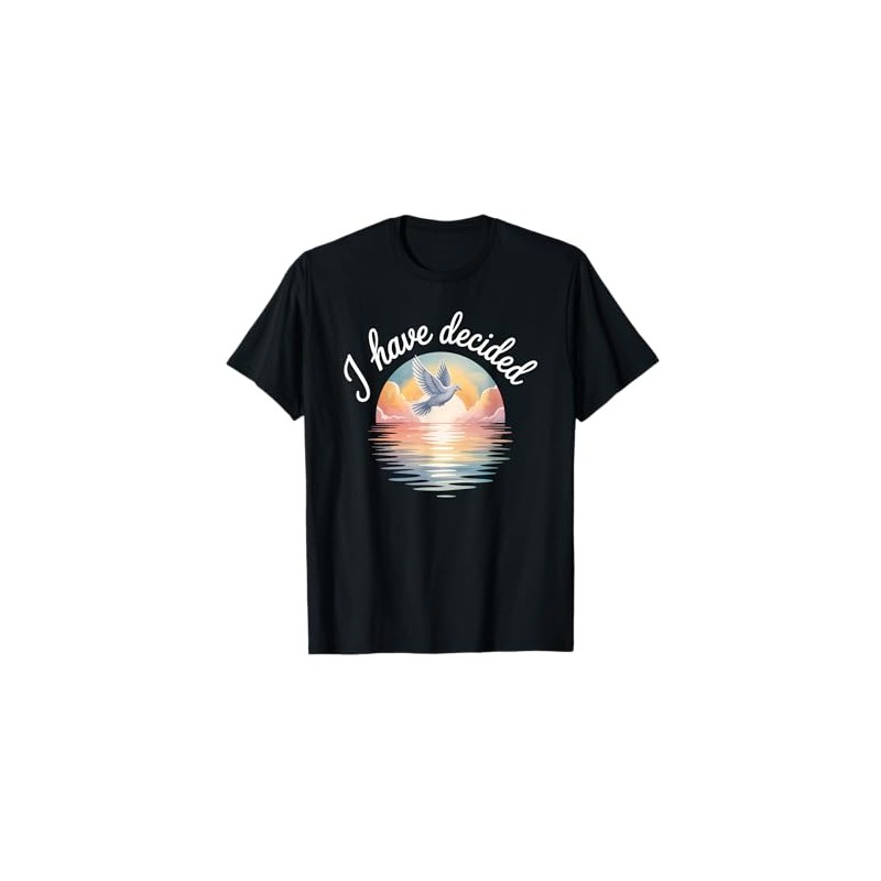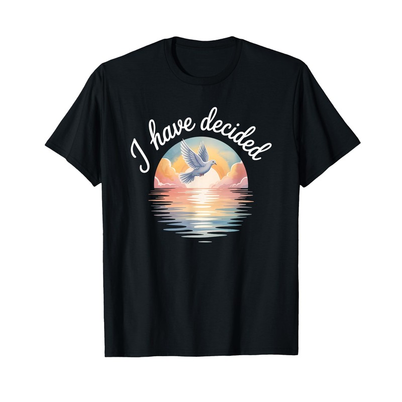 • Beautiful baptism-inspired design with a dove soaring over water at sunrise under the words “I have decided.” A symbolic declaration of faith, renewal, and spiritual transformation. Perfect for believers celebrating this life-changing moment.