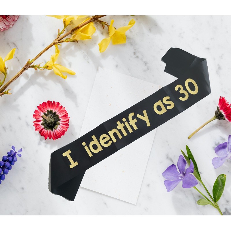 I Identify As 30 Sash, Funny Birthday Gold Glitter Sash - Happy Men's Birthday Party Decorations Supplies Ideas and Gifts, 21st 30th 40th 50th 60th 70th 80th Adult Birthday Decorations