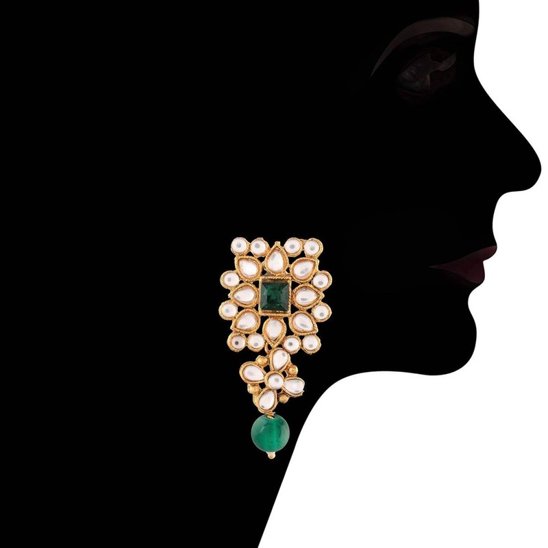 I Jewels Girls 18K Gold Plated Indian Bollywood Light Weighted Kundan Pearl Studded Jewelry Set (Ml224G) Green