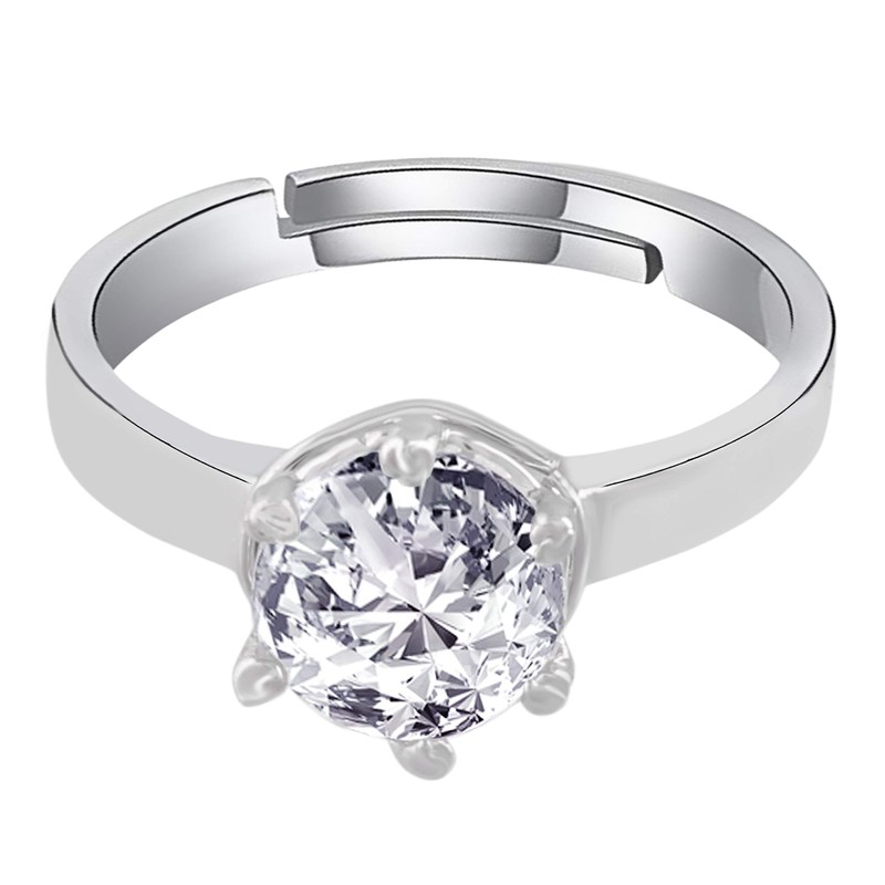 I Jewels Girls 18K Plated Engagement Elegant Classy Cz Crystal Adjustable Designer Ring (Fl179) Silver