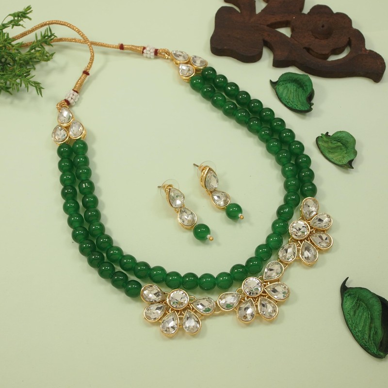 I Jewels Gold Plated Indian Wedding Bollywood Kundan & Pearls Necklace Jewellery Set with Earrings for Women (IJ360) (Green)