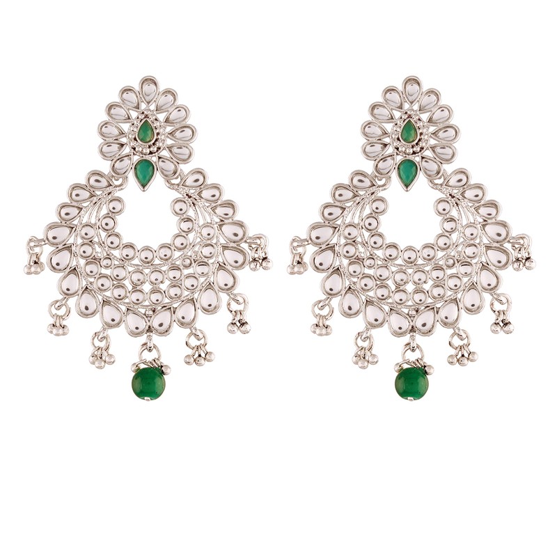 I Jewels Indian Traditional Jewelry Rhodium Plated Bollywood Faux Kundan & Chandbali Earrings for Women (E2457ZG)
