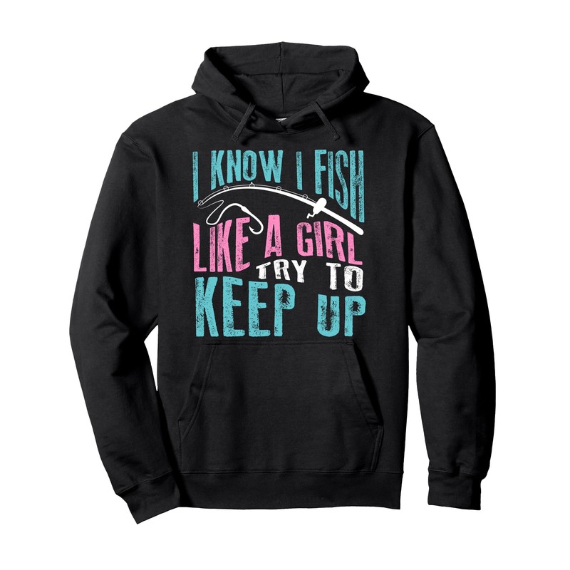 I Know I Fish Try To Keep Up Fishing Like A Girl Gift Pullover Hoodie