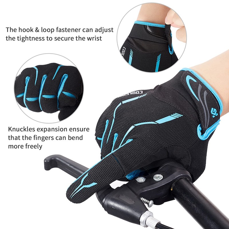 I Kua Fly Full Finger Cycling Gloves Men Touchscreen Compatible MTB Gloves with Gel for Men Women (Blue, S)