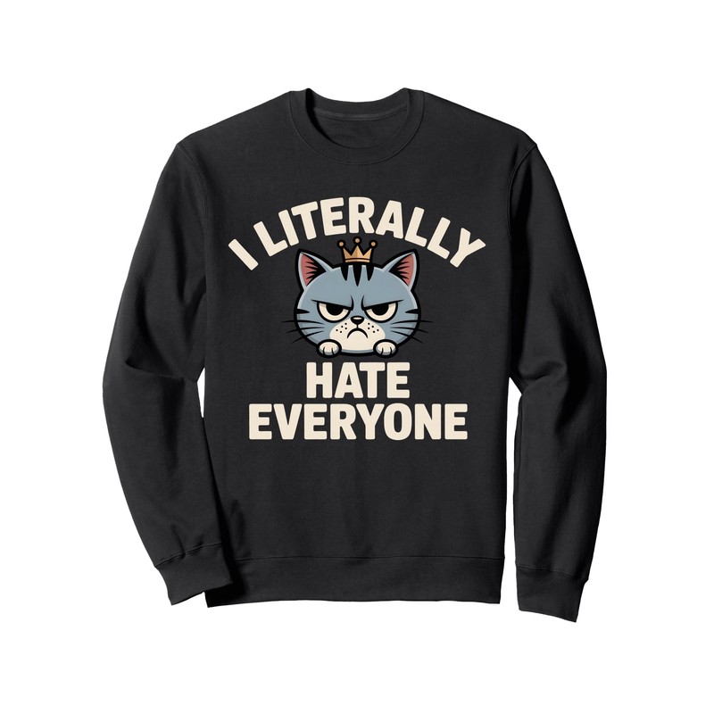 I Literally Hate Everyone Funny Introvert Angry Cat Meme Sweatshirt