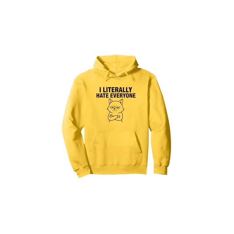 I Literally Hate Everyone Funny Introvert Cat for Men Women Pullover Hoodie
