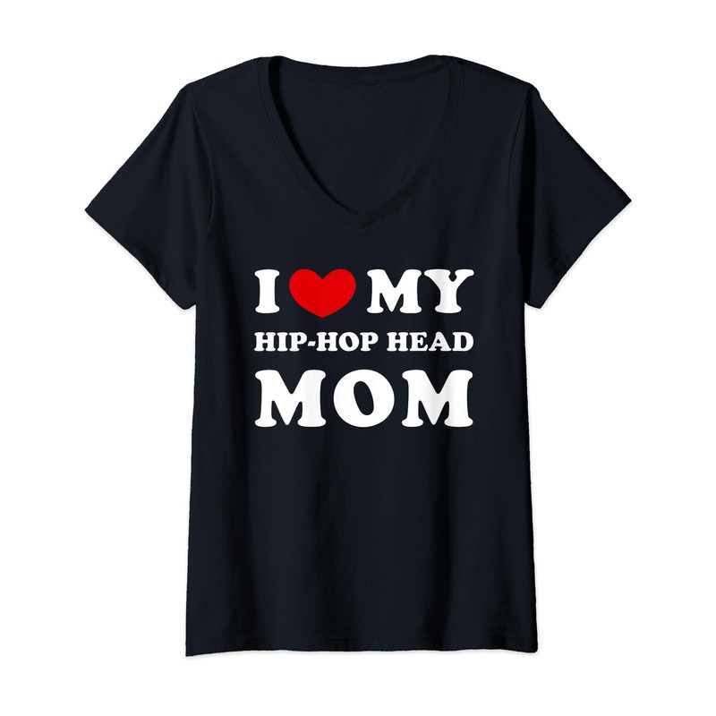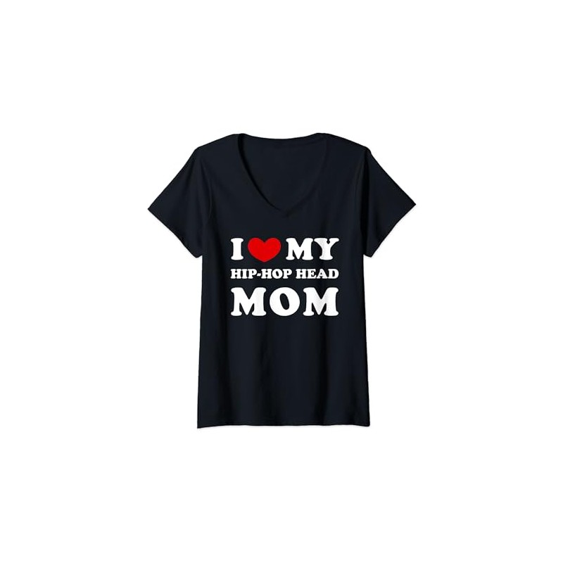 I Love My Hip-Hop Head Mom, I Heart My Hip-Hop Head Mom V-Neck T-Shirt