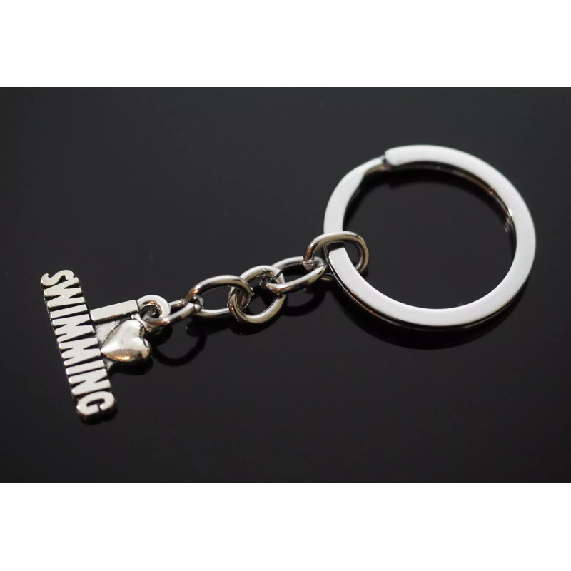 "I Love Swimming" Key Chain Silver Pendant Keychain Coach Teacher Player Gift