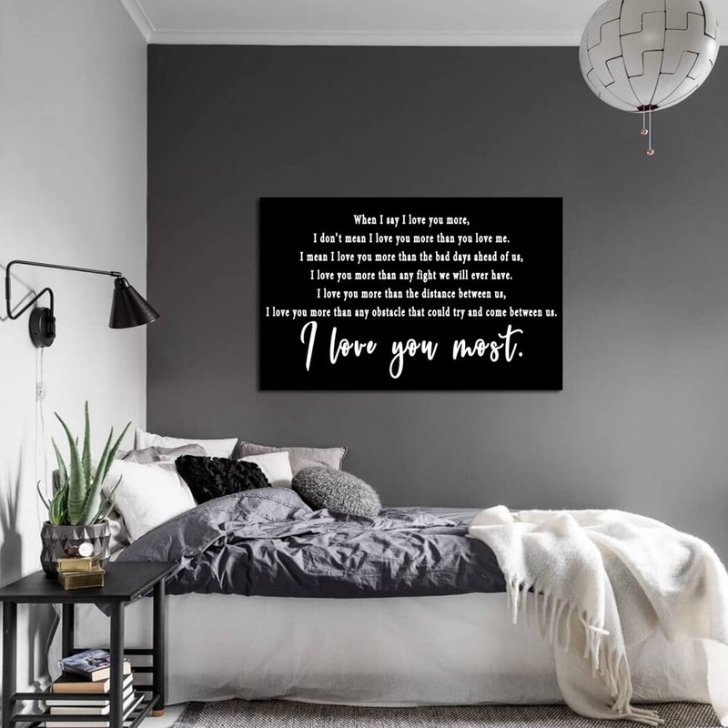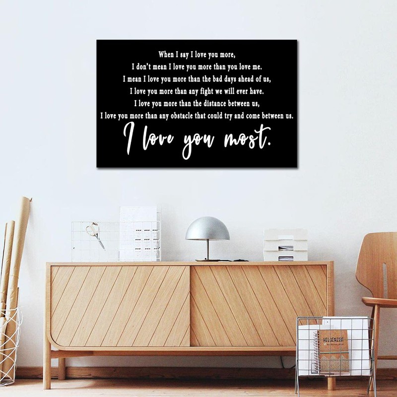 I Love You More Wall Art, When I say I Love You More Canvas Print,I Love You Most Decor,Black and White Master Bedroom Picture,Over The Bed Typography Sign,Living Room Decal,Frame Easy to Hang