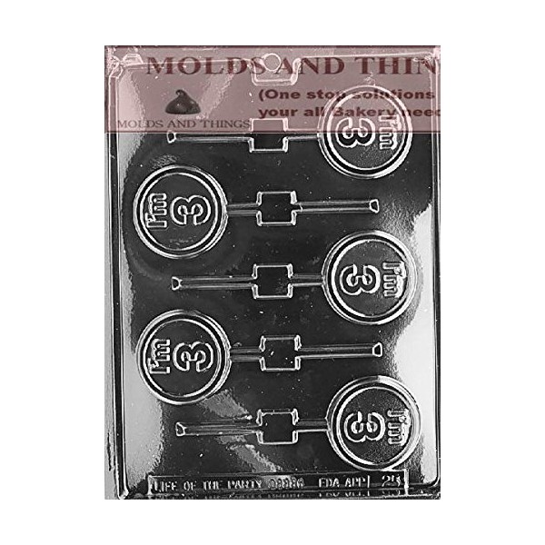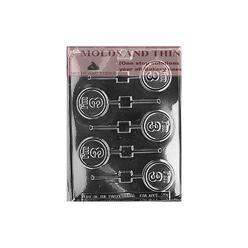 - I'M 3 LOLLY numbers and letters Chocolate candy mold cavity size2" round 5/16 deep