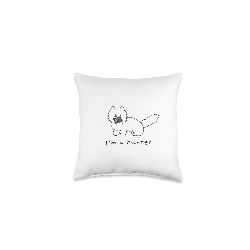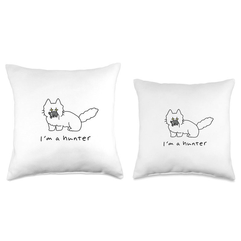 I'm a hunter Cute fluffy white cat catches a mouse Throw Pillow