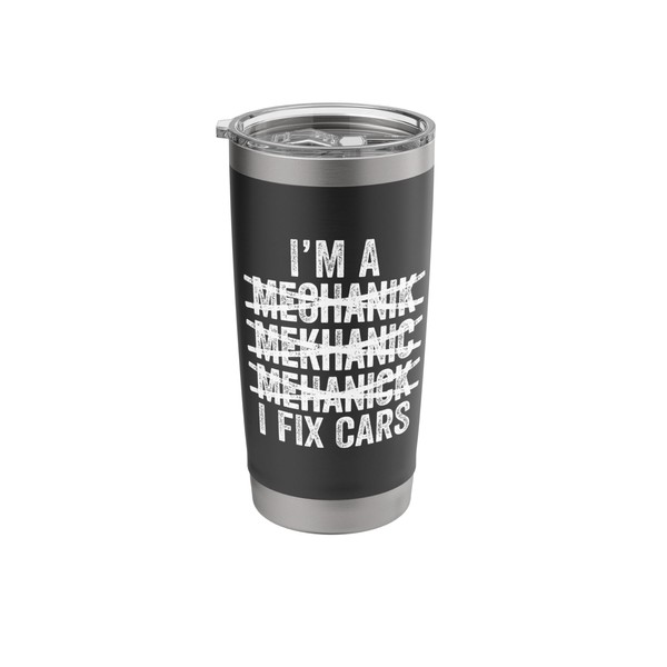 - Funny Saying Misspelled I'm A Mechanic I Fix Cars Cup. Complete your collection of auto technician party accessories for him / her (apron, tools, hat, costume, jumpsuit, uniform, matching outfit, shirt, mechanical equipment) with this Travel Coffee Mug