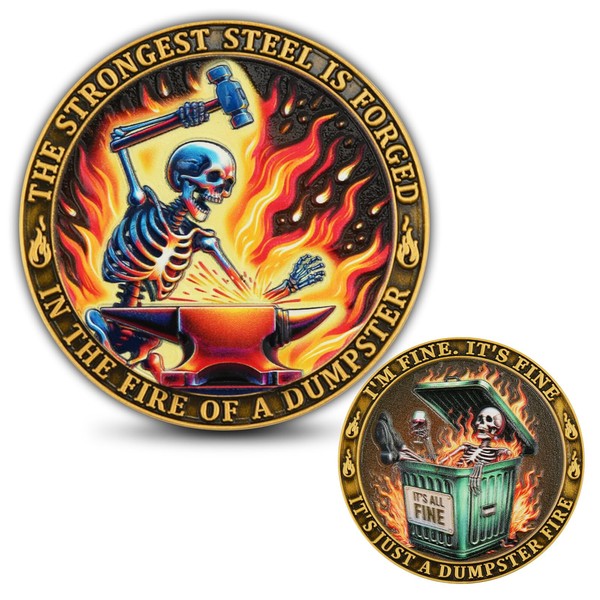- I'm Fine Skull in Burning Dumpster Challenge Coin