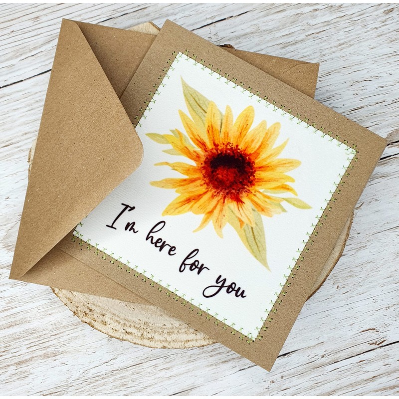 I'm Here For You, Greeting Card, Thinking Of You, Sympathy Card, Handmade, Condolence Card, Sorry For Your Loss, Sunflower, 24 Hour Shipping