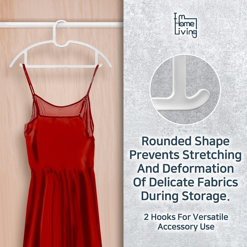 - 【Protects Delicate Fabrics】The rounded shape prevents stretching and deformation of sensitive fabrics like knits and shirts, even during long-term storage. The unique design allows you to slide clothes through the neckline and sleeves, preventing the neckline from stretching over time.