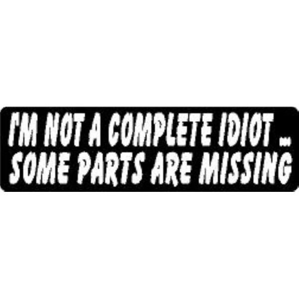 I'M NOT A COMPLETE IDIOT SOME PARTS ARE MISSING HELMET STICKER HARD HAT STICKER