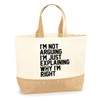 • Stylish and Functional Design: This durable jute canvas bag features the bold slogan, "I'm Not Arguing, I'm Just Explaining Why I'm Right," perfect for adding humor and personality to your everyday accessories.