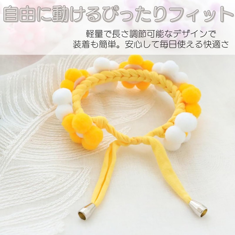 I'm so happy Cat Collar, Scrunchie, Floral Pattern, Cute, Ribbon, Fluffy, Dog, Pom Pom, Soft, Stylish, Pet (Yellow, XS)