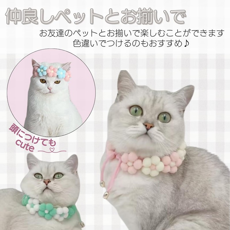 • (Plan for Double the Cuteness of your Pet) The floral collar with pom poms makes it a great hit when walking or gathering with friends. Cute and adorable design to maximize your pet charm. Add color to your daily life and make your pet more enjoyable and richer time