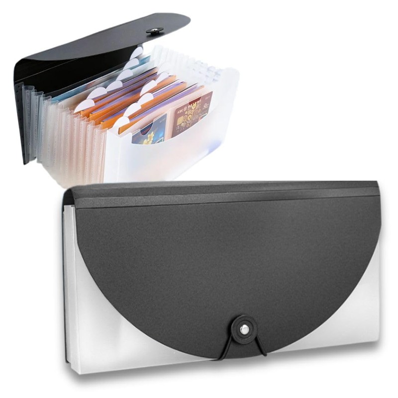 - (Wide opening accordion construction for easy insertion and removal): The accordion-type construction opens wide and allows for easy insertion and removal of documents. The wide design allows you to comfortably store longer receipts and larger documents without folding them. Long Size 3 envelopes can be stored without folding and can also hold A4 paper in tri folds. Elastic band on the outside ensures a secure hold even with more volume Designed to keep contents from spilling even when turned upside down, it is compatible with a variety of document organizations