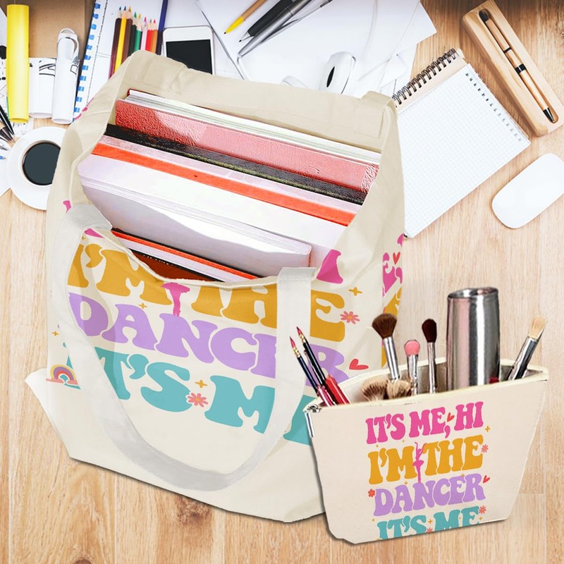 I'm the Dancer, Dancer Gifts, 2PCS Makeup Cosmetic Bag Canvas Tote Bag Beach Bag for Shopping Work Office ,Dance Teacher Gifts Dancing Ballet Girl Gift for Women Girl Mom Sister Birthday Christmas