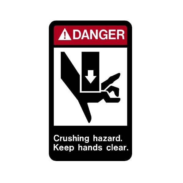 I Make Decals™ - Danger Crushing Hazard Keep Hands Clear Decal Sticker Placard 2.55" W X 4.45" H