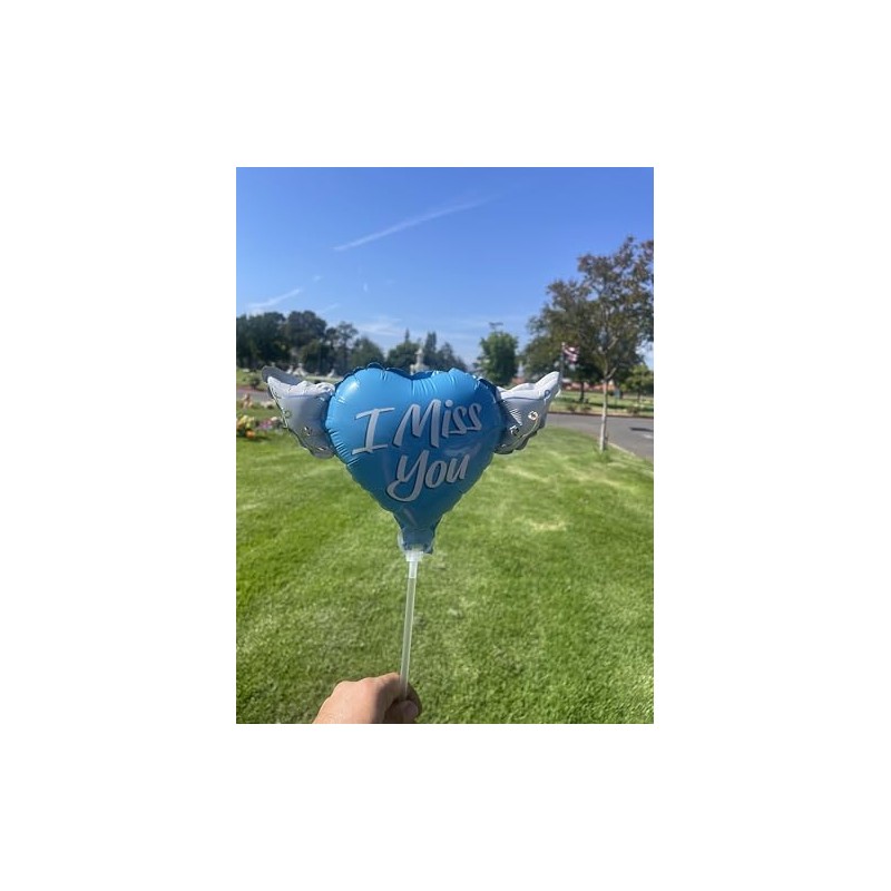 I Miss You Heavenly Balloons Heart Shaped on a Stick with Angel Wings – Memorial & Remembrance (Blue)