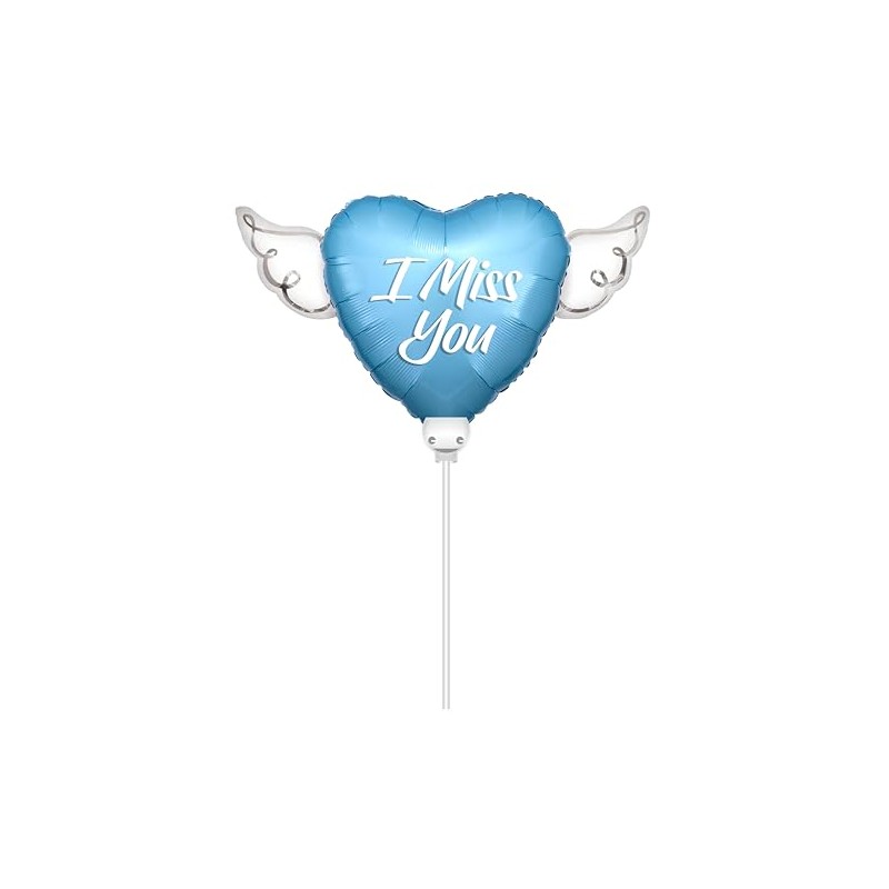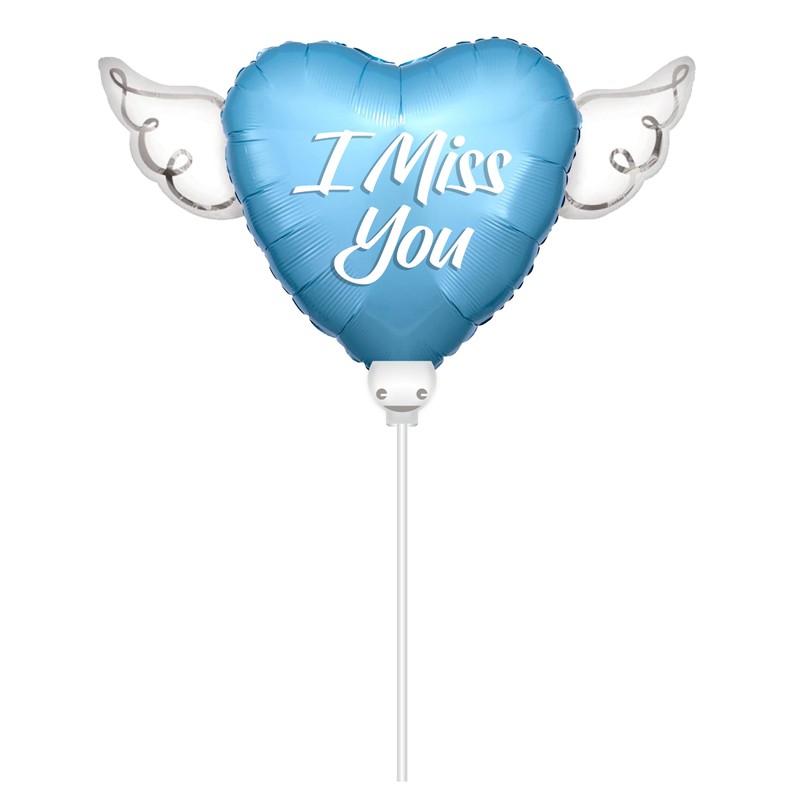 - Heavenly Balloons on a stick 8" I Miss You balloon heart shaped with angel wings