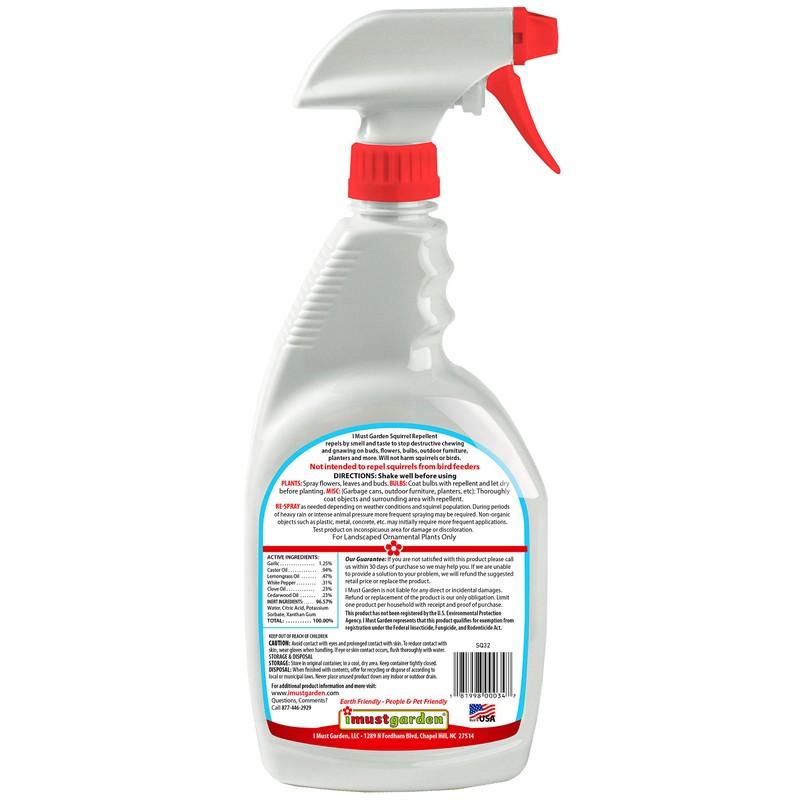 I Must Garden Squirrel Repellent: Protects Vehicles, Plants, Decking, & Furniture – Works on Chipmunks – 32oz Ready to Use
