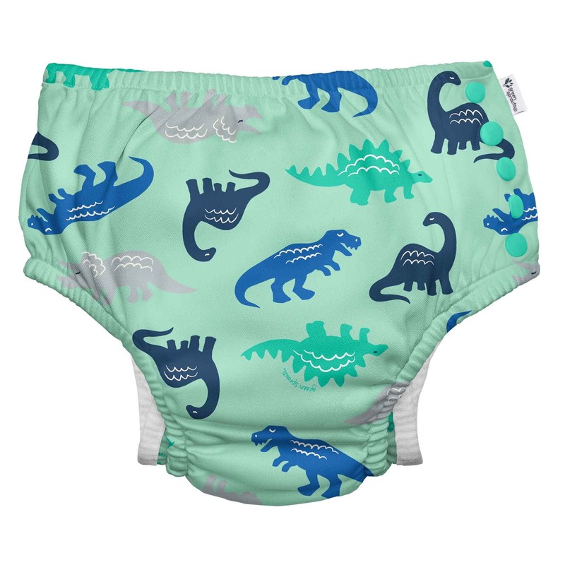 i play. by green sprouts Reusable, Eco Snap Swim Diaper with Gussets, UPF 50, Patented Design, STANDARD 100 by OEKO-TEX Certified - Seafoam Simple Dino - 6 mo