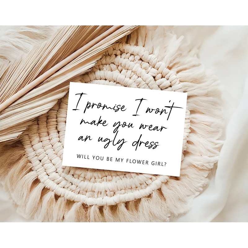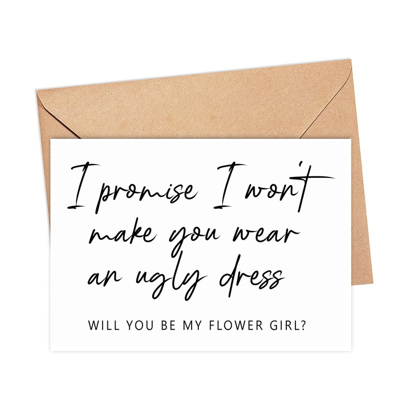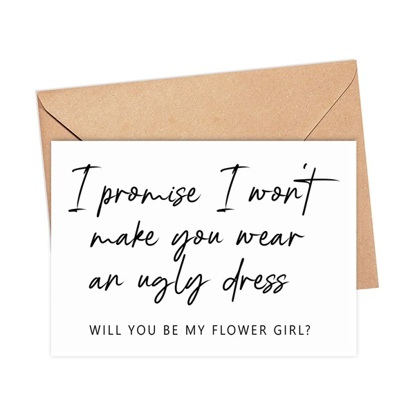 I Promise I Won't Make You Wear An Ugly Dress - Will You Be My Flower Girl? Card - Wedding Card - Flower Girl Card - Bridesmaid Card - Card For Flower Girl From Bride - Funny Card Flower Girl