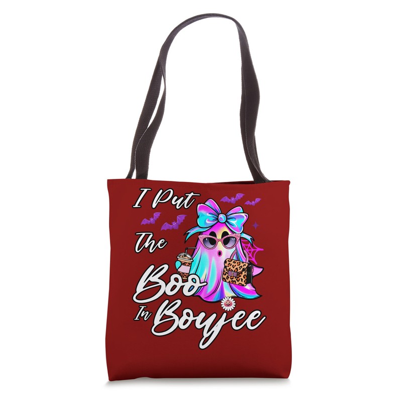 I Put The Boo in Boujee Funny Leopard Boujie Ghost Halloween Tote Bag