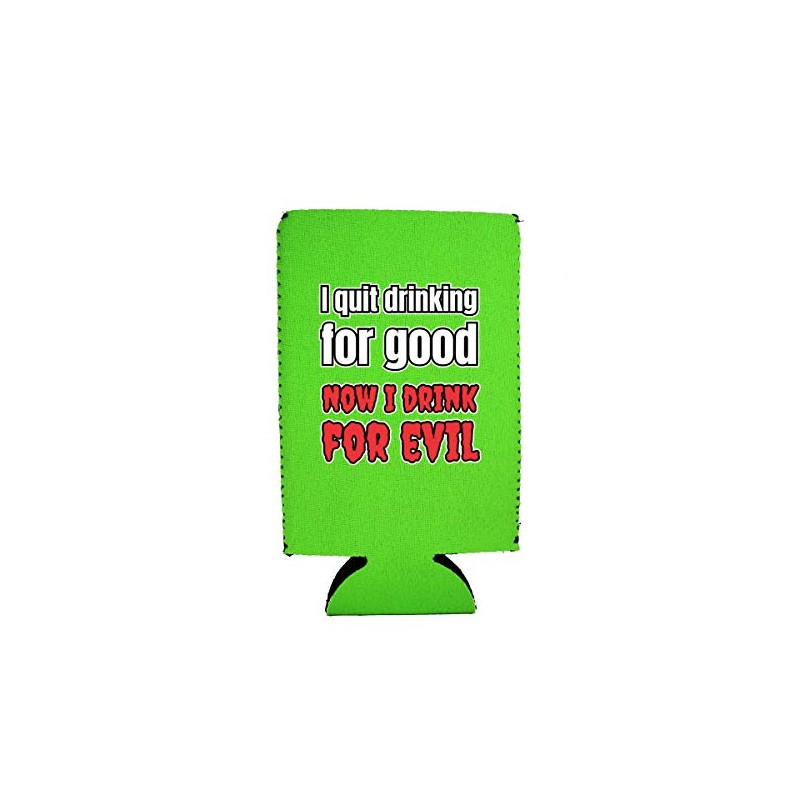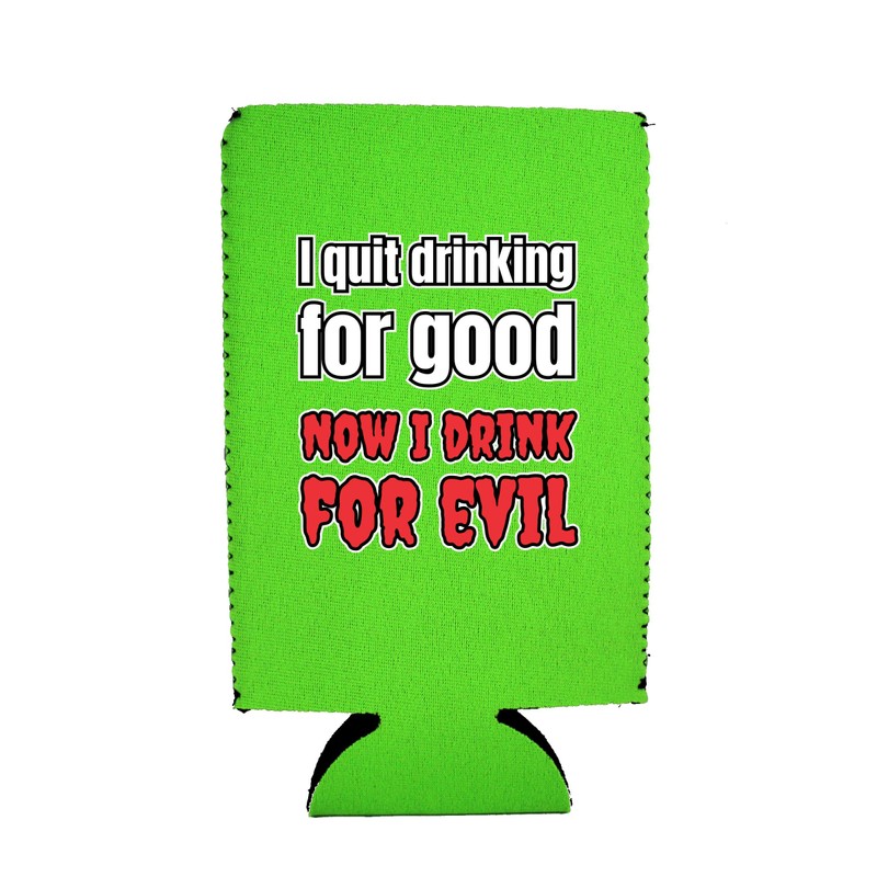 I Quit Drinking For Good, Now I Drink For Evil 16 oz. Can Coolie (Bright Green, 2 Pack)