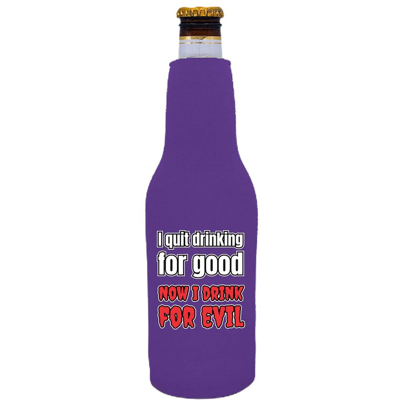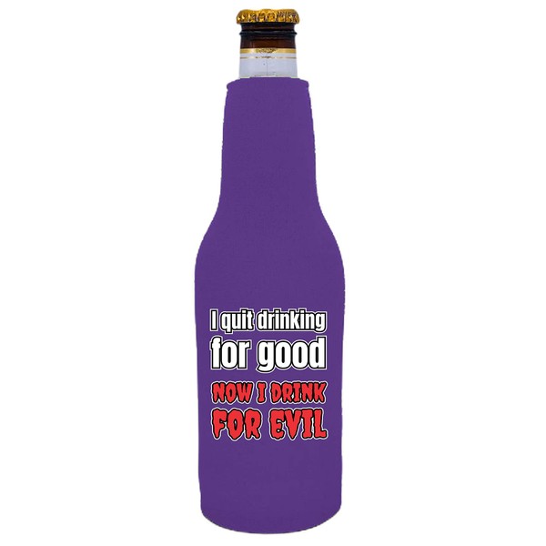 I Quit Drinking For Good, Now I Drink For Evil Beer Bottle Coolie (Purple, 2 Pack)