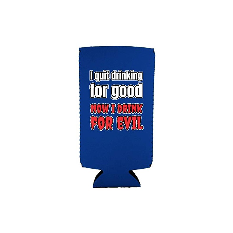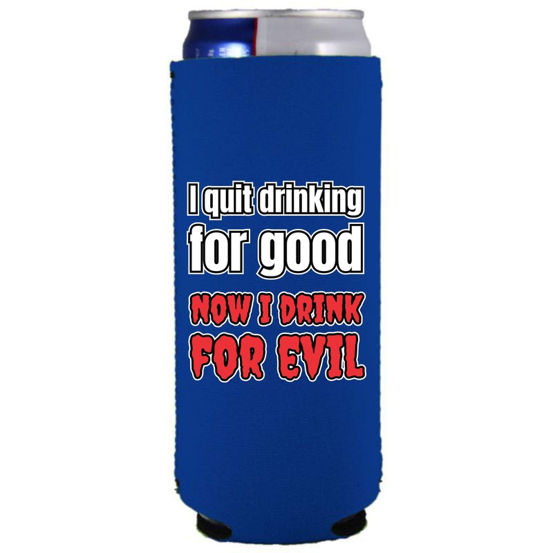 I Quit Drinking For Good, Now I Drink For Evil Slim Can Coolie (Royal Blue, 2 Pack)