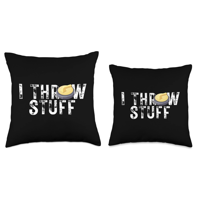 I Throw Stuff Curling Player Funny Curling Stone Gift Throw Pillow