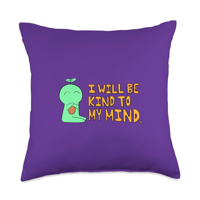 "I Will Be Kind To My Mind" Avocado Guy Throw Pillow