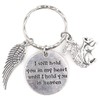- The loss of a loved one, whether sudden or expected, can be a difficult trial. The “I will hold you in my heart until I hold you in heaven” charm is a reminder that they will see their loved one again. The “angel wing” charm symbolizes their loved one with beautiful wings in heaven – flying with no worries, hurt or pain. This memorial keychain gift will give comfort to your special someone struggling through a loss.