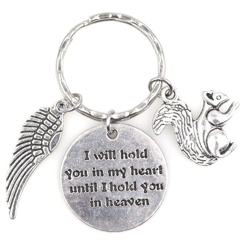 I Will Hold You in My Heart Until I Hold You in Heaven Angel Wing Bereavement Pet Memorial Companion Four-Legged Friend Sympathy Loss of Loved One Dog Pet Fur Baby Friend Squirrel Keychain 115E