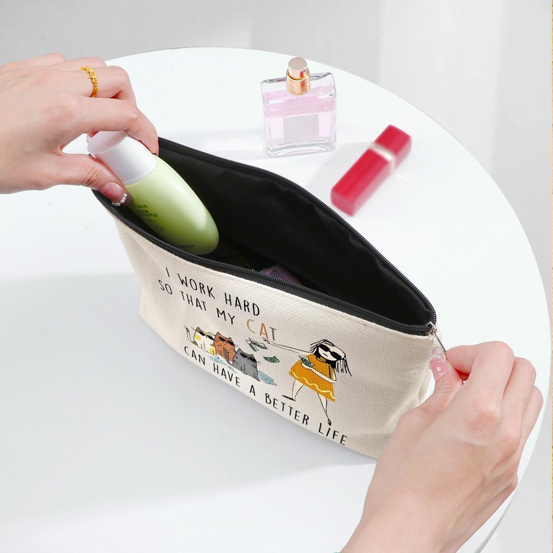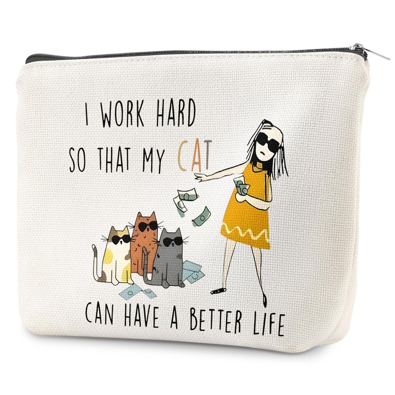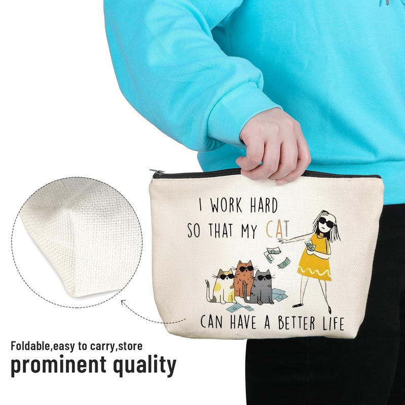 I Work Hard So That My Cat Can Have A Better Life Makeup Bag Cute Trendy Stuff Essentials Reusable Durable Accessories Christmas Birthday Funny Trip Travel Toiletry Waterproof Zipper Pouch Bag