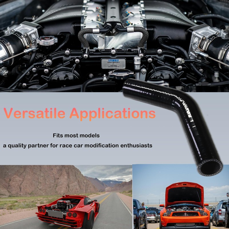 - 【Emperature and Pressure Resistance】45 degree elbow silicone hose is operates effectively within a temperature range of -40°F to 428°F (-40°C to 220°C)and supports 130PSI at room temperature for superior safety, making it ideal for extreme weather and industrial applications.