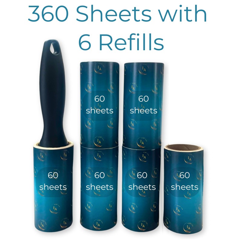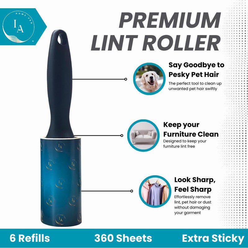 IA Home Pro Lint Roller with 6 Refills, 360 Sheets Total, Extra Sticky Sheets for Pet Hair, Clothes & Furniture