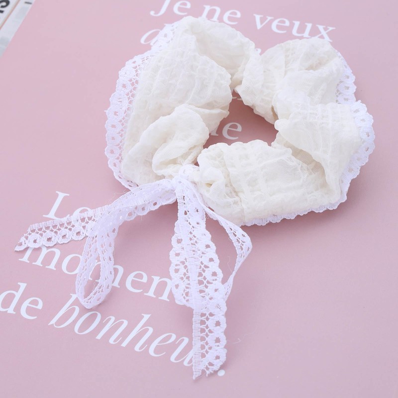 Iaceble Lace Bow Hair Scrunchie Off White Lace Hair Tie Soft Lace Ponytail Holder Scrunchie Elastic Lace Hair Scrunchies Decorative Hair Accessories for Women Headdress