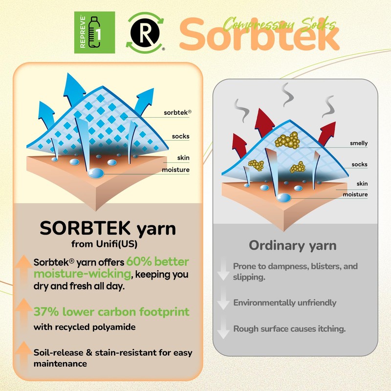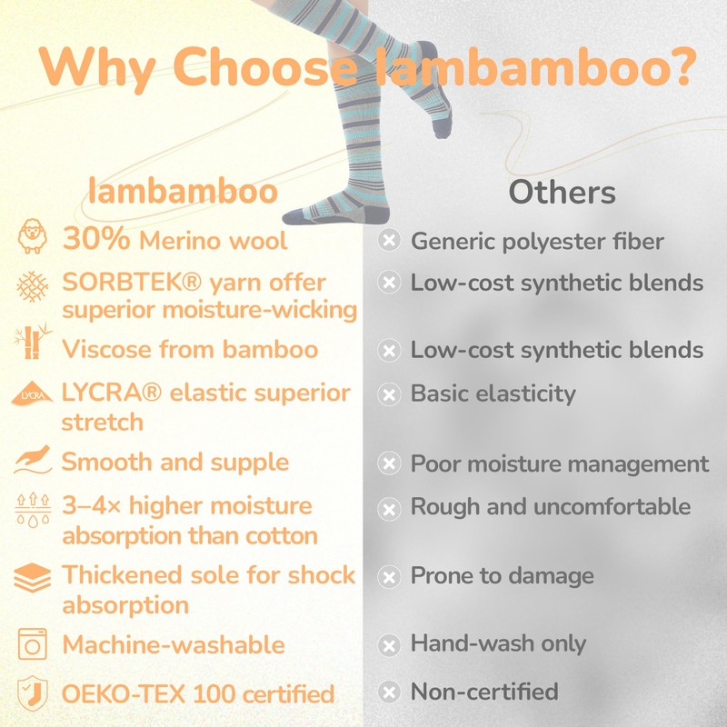 - Ultra Soft & Breathable: The compression socks is made of MERINO WOOL & VISCOSE from BAMBOO, which is anti-odor, moisture-wicking, thermoregulating, breathable, ultra-soft, lightweight, perfect for all-season comfort. Arch Support assists in optimizing foot force, Seamless Toe Closure protect your toes