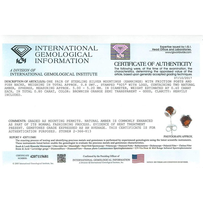 - Genuine Amber Stud Earrings